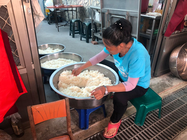 今年比較遺憾的是有關典座媽媽們無怨無悔、揮汗如雨卻又歡喜做的大寮身影的鏡頭太少。這些媽媽們,每年都在想怎樣提供最好吃的素食,讓小朋友覺得原來素食也能這麼好吃,以後就不會排斥吃素食了。她們不僅變化三餐來餵飽這群飢餓的大小朋友,還糾團集資來買種種的食材、煎包、做包子來豐富大小朋友的菜色。營期中,在佛堂上課的我們還能吹冷氣,就是這群身影在燥熱的廚房中,辛苦的用美味的菜餚來呈現她們的愛心。她們總是年復一年,默默的耕耘,默默的看著孩子們長大;然後默默的在營期結束後,留下來打掃小朋友的寮房…沒有太多亮相的時刻,也沒有太多的掌聲—但是,只要小朋友的一句:「謝謝典座媽媽們」,她們所有的汗水都化成欣慰的笑容!感恩您們,偉大的典座媽媽們!